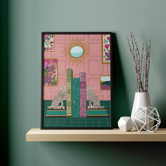 Cheetah Bookends Art Print | Home Decor | Office Wall Art