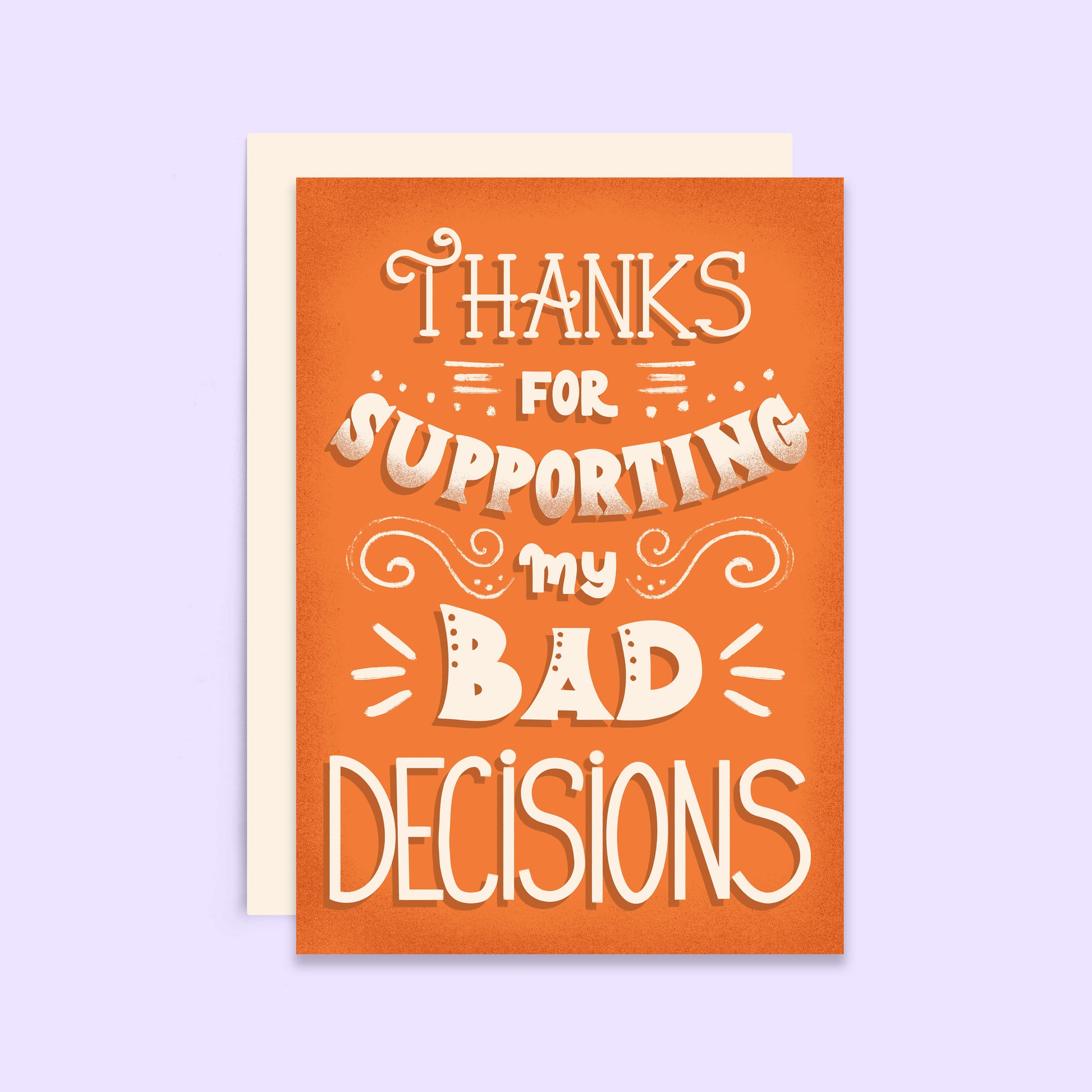 Bad Decisions Thank You Card | Funny Thank You Card | Thanks