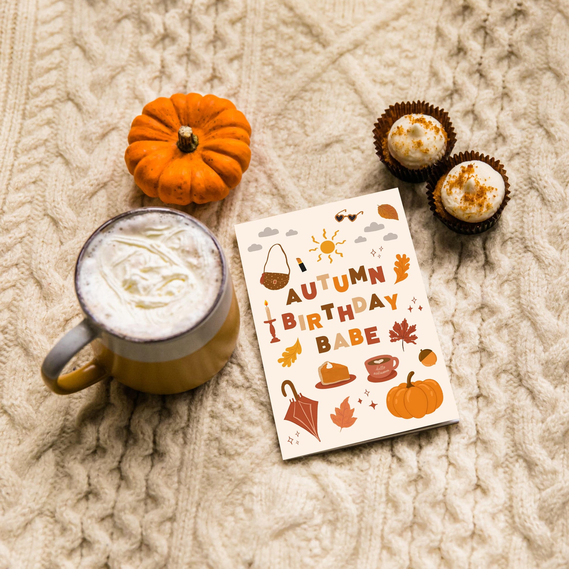 Autumn Babe Birthday Card | Fall Birthday Card | Female Birthday Card