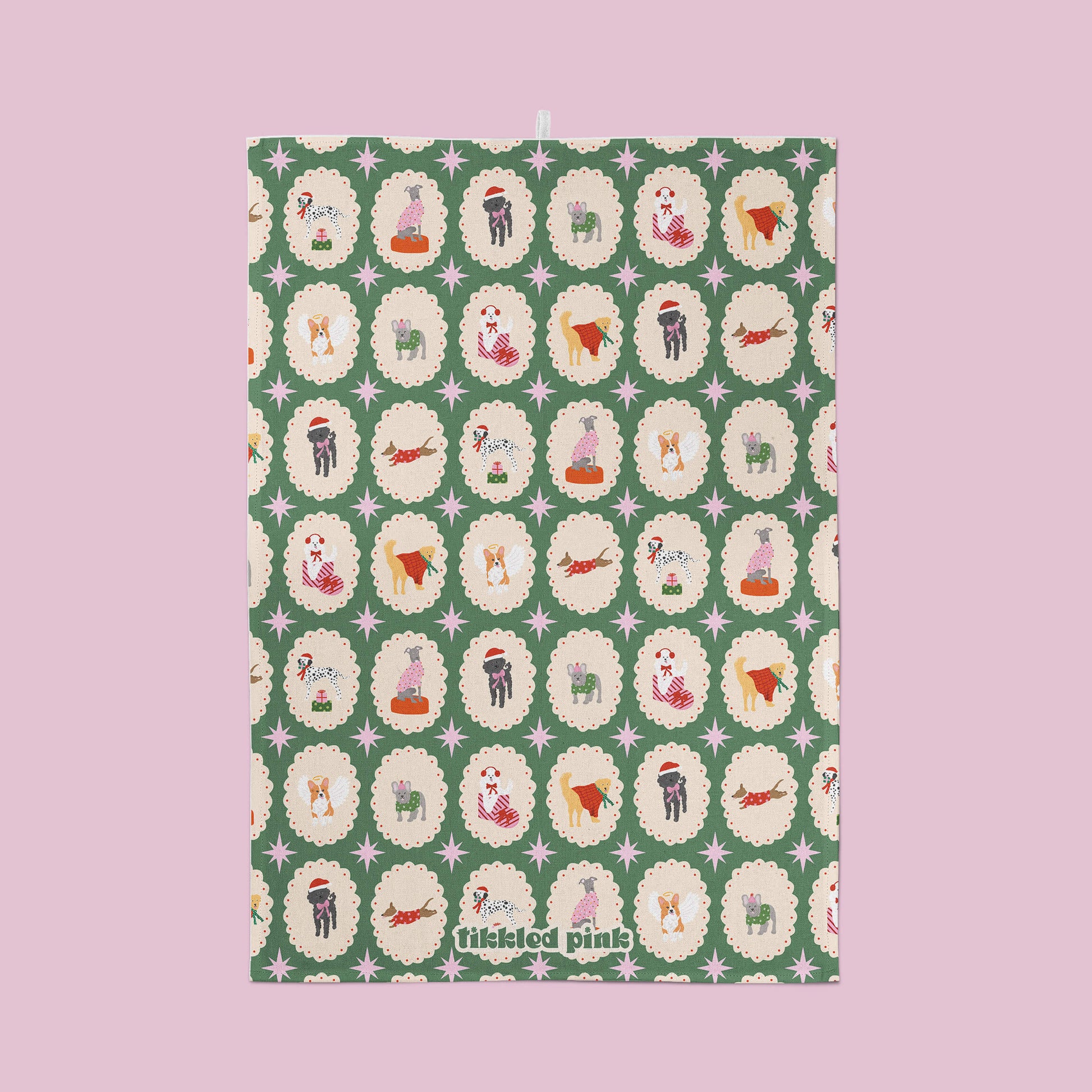 Christmas Dogs Tea Towel | Dogs Kitchen Dish Towel