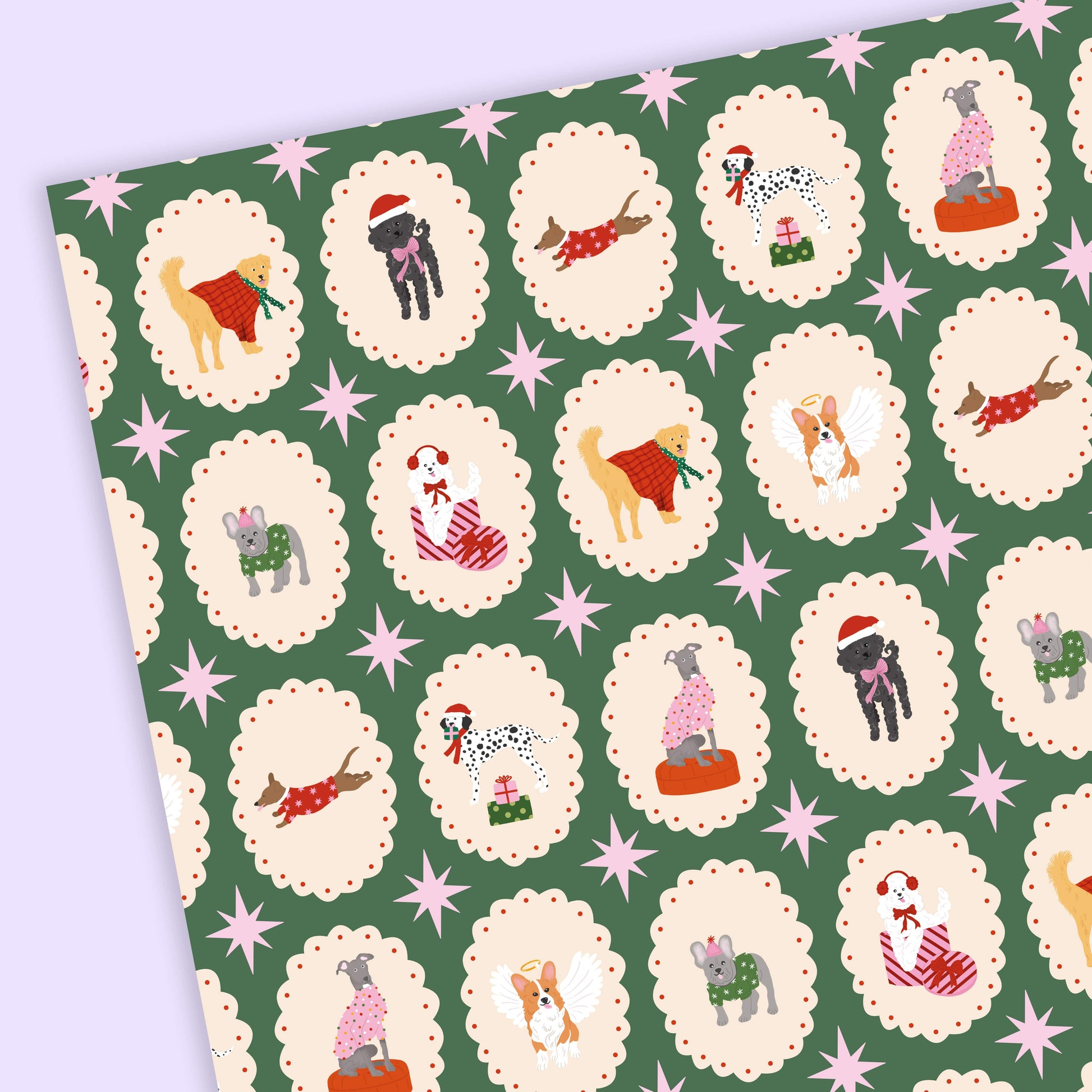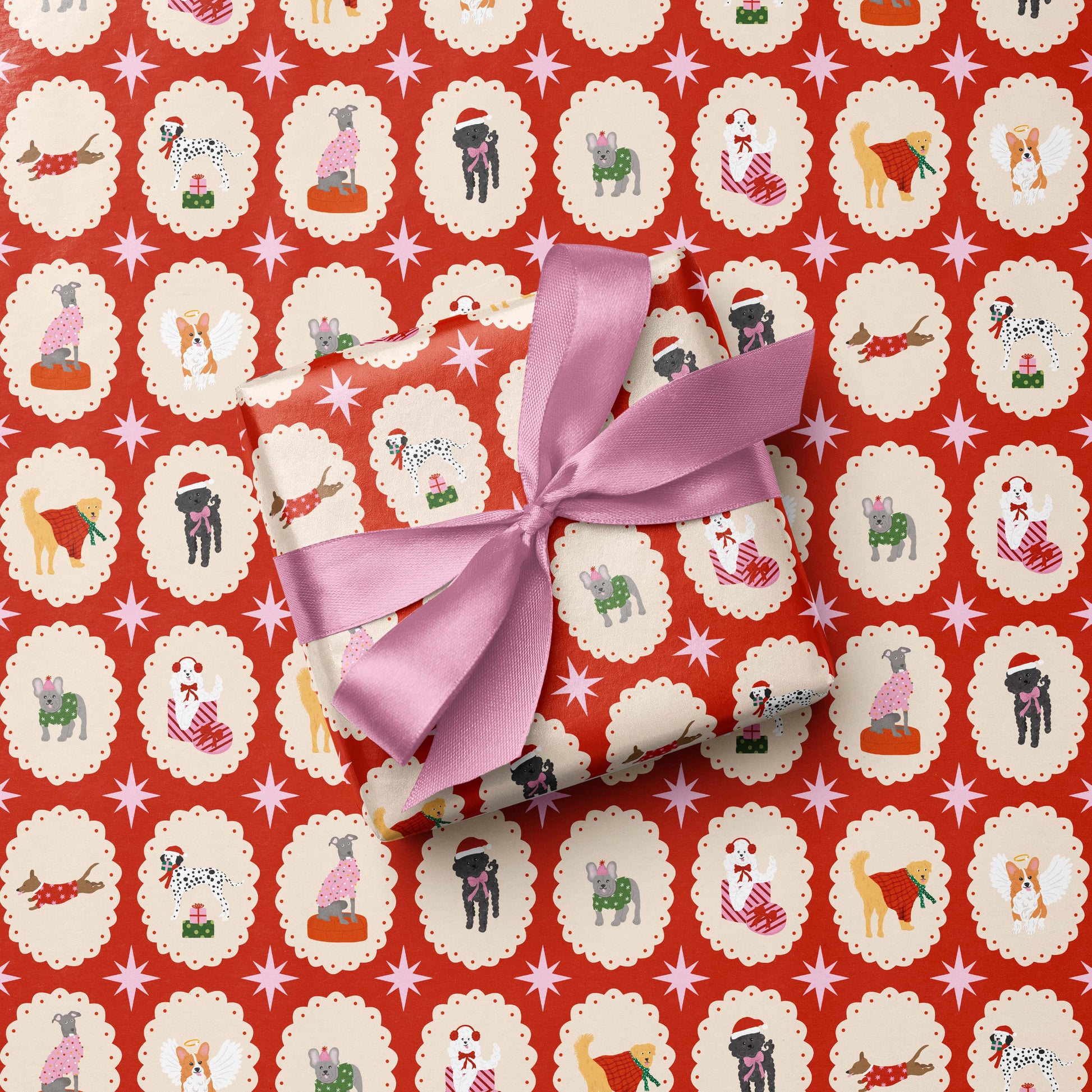 Christmas Dogs Wrapping Paper Sheets | Dog Holiday Gift Wrap