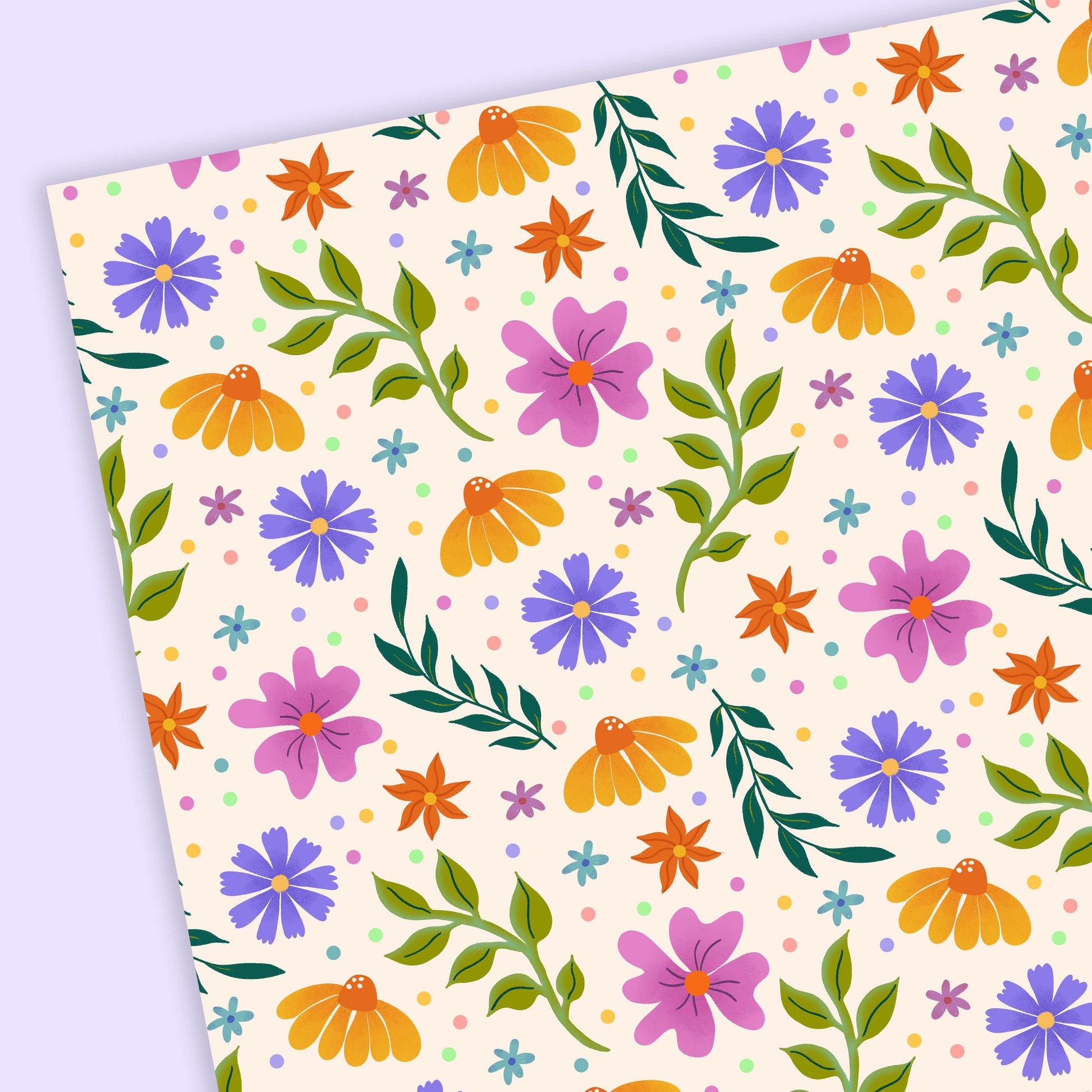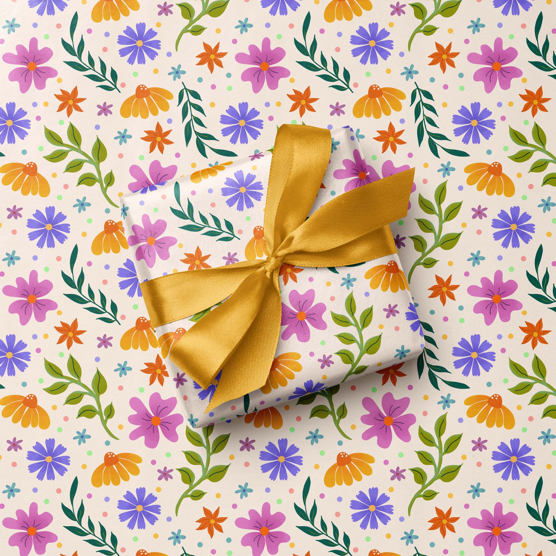 A fresh floral ditsy pattern wrapping paper. Perfect for birthdays, anniversaries, farewell gifts, for young and adult people alike.