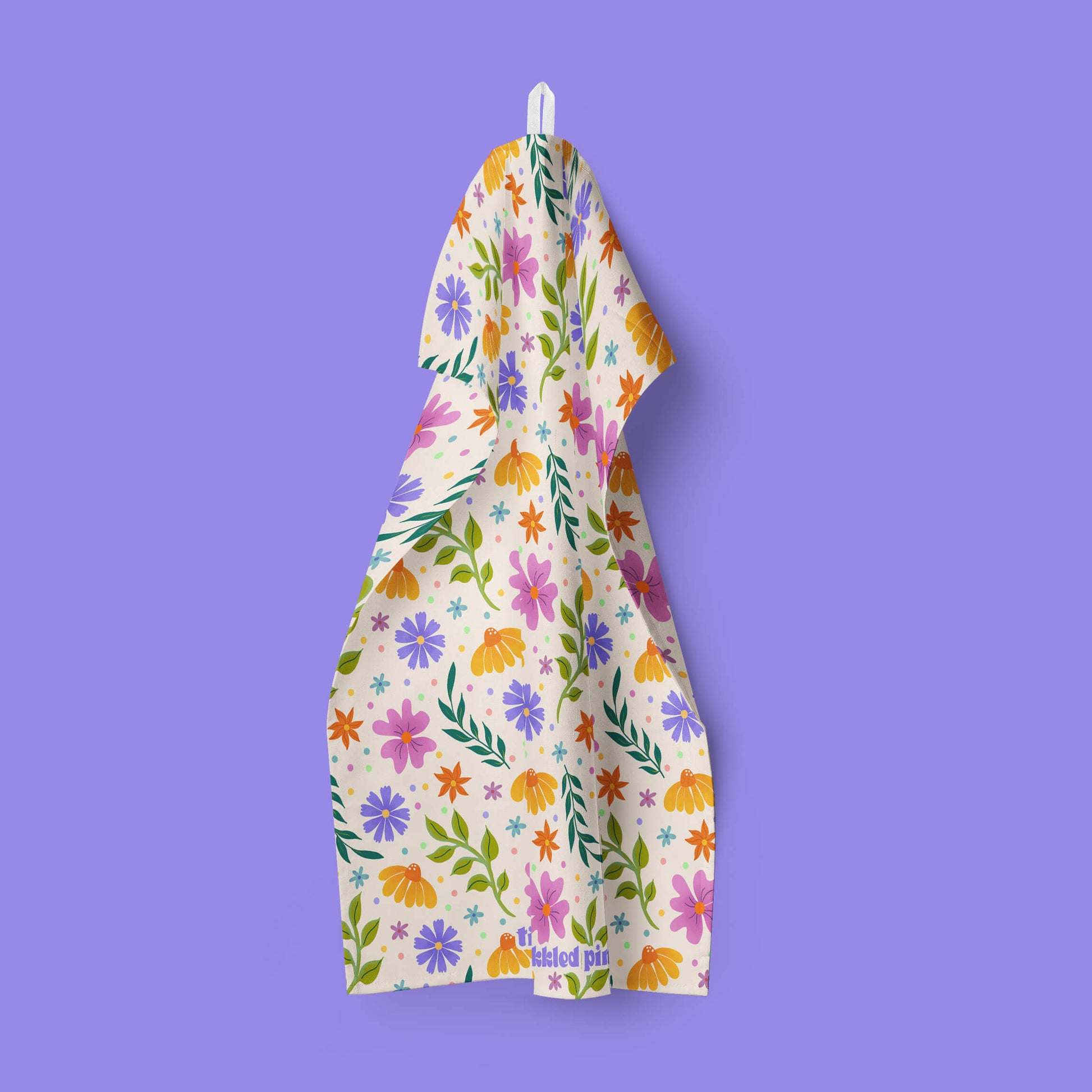 Perfect for drying dishes, hands, or as a decorative kitchen accessory, this tea towel is a must-have for anyone who loves floral patterns and a touch of whimsy.