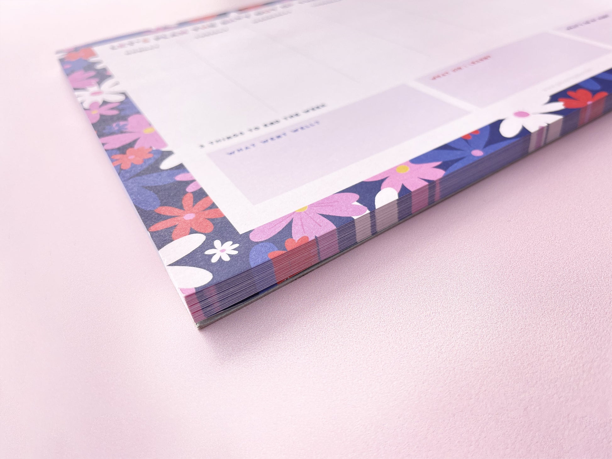 The planner runs from Monday to Sunday with plenty of space for notes and doodles. It also has 3 sections at the bottom to help you reflect on the week and take any learnings forward to the next week.