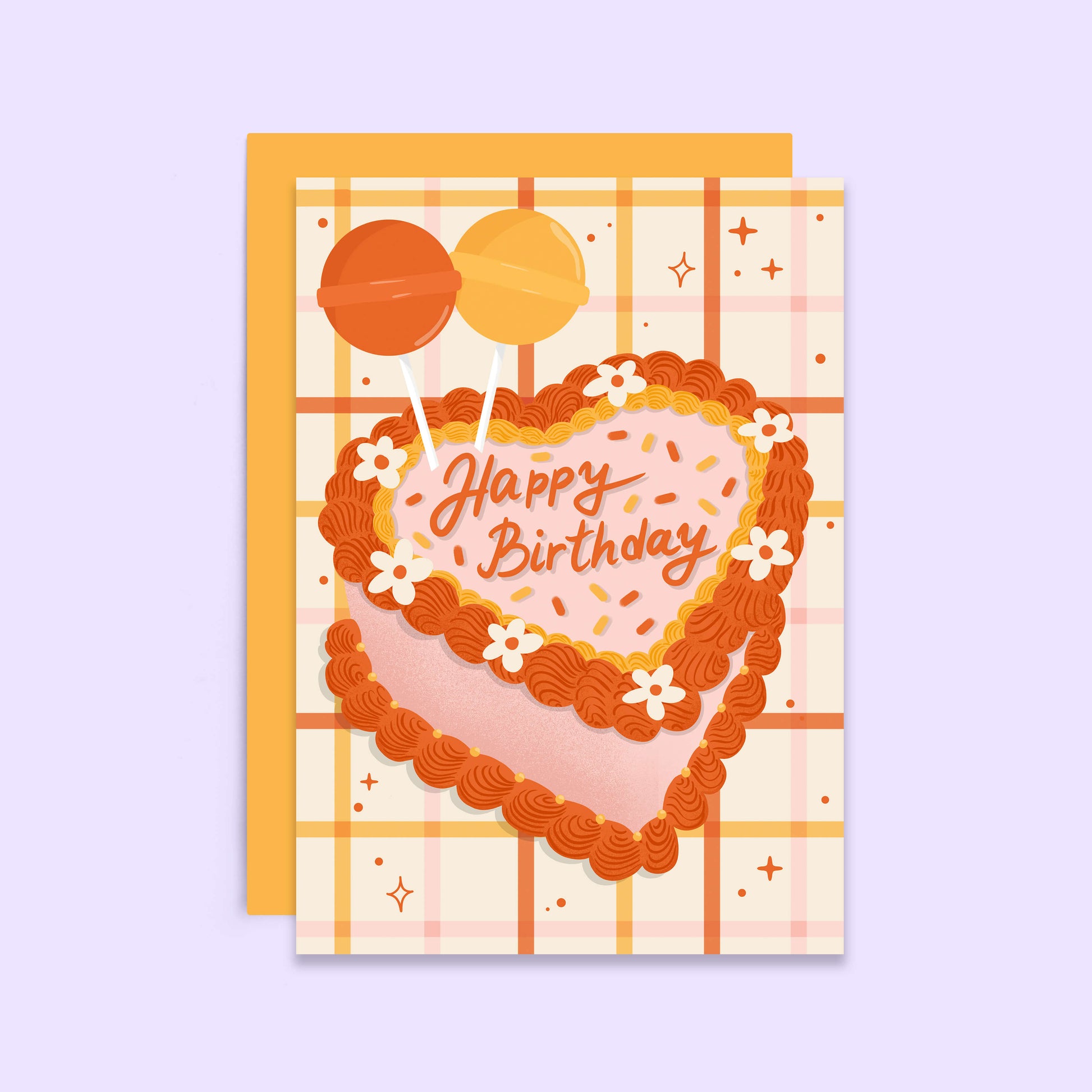 Kitsch Birthday Cake Card | Vintage Heart Shaped Cake Card