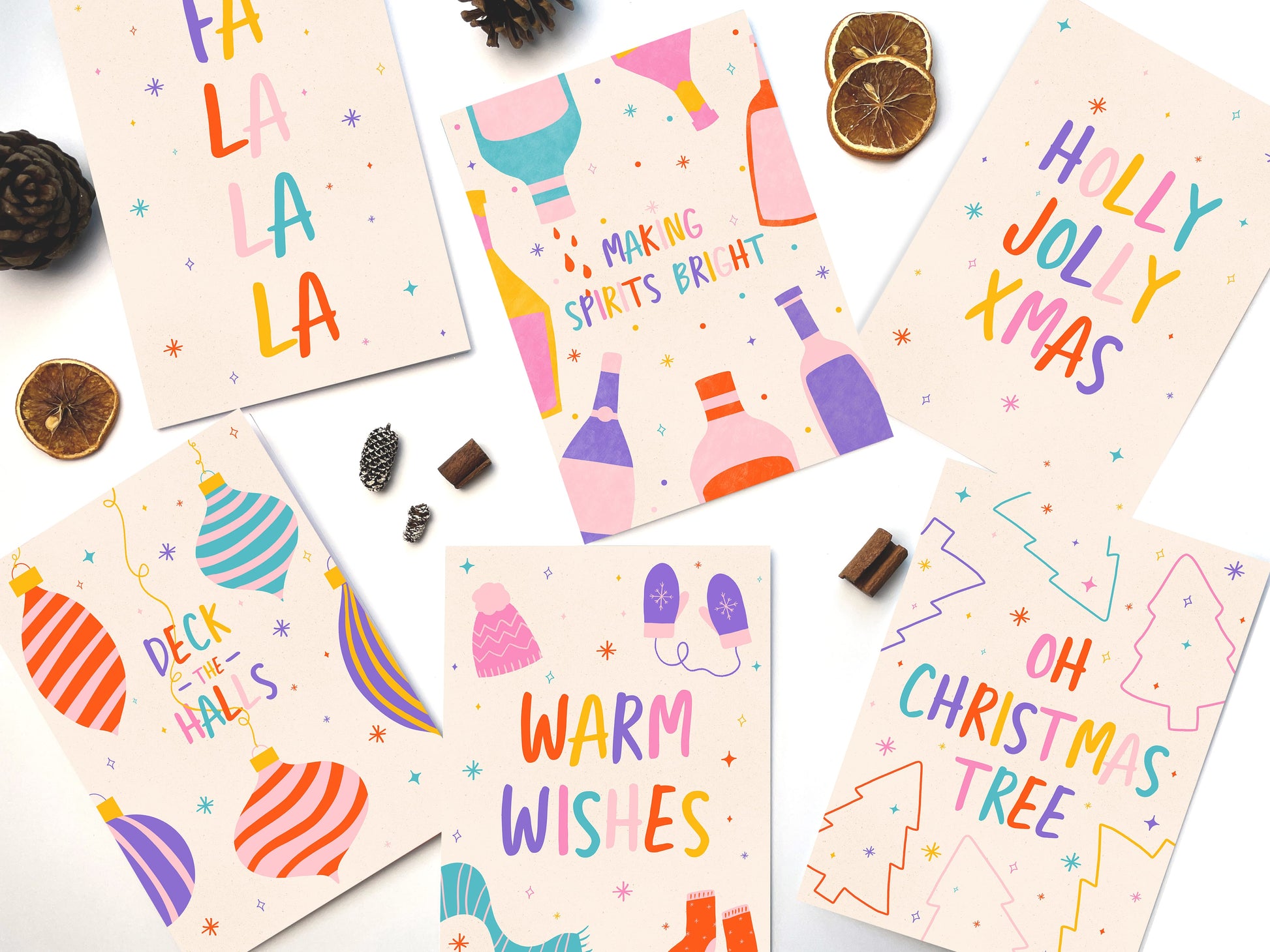 This seasonal card is part of a jolly collection of greeting cards from Tikkled Pink, which use unconventional colours to celebrate the holiday season with a non-traditional twist. The festive cards are designed and printed in the UK using high quality, environmentally friendly materials and processes to maximise sustainability.