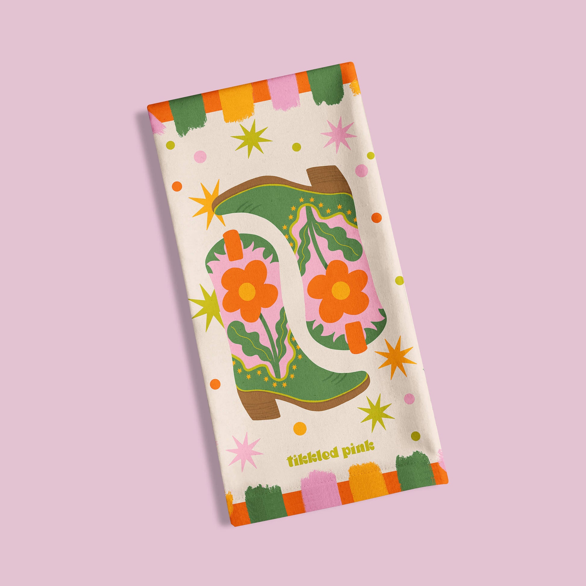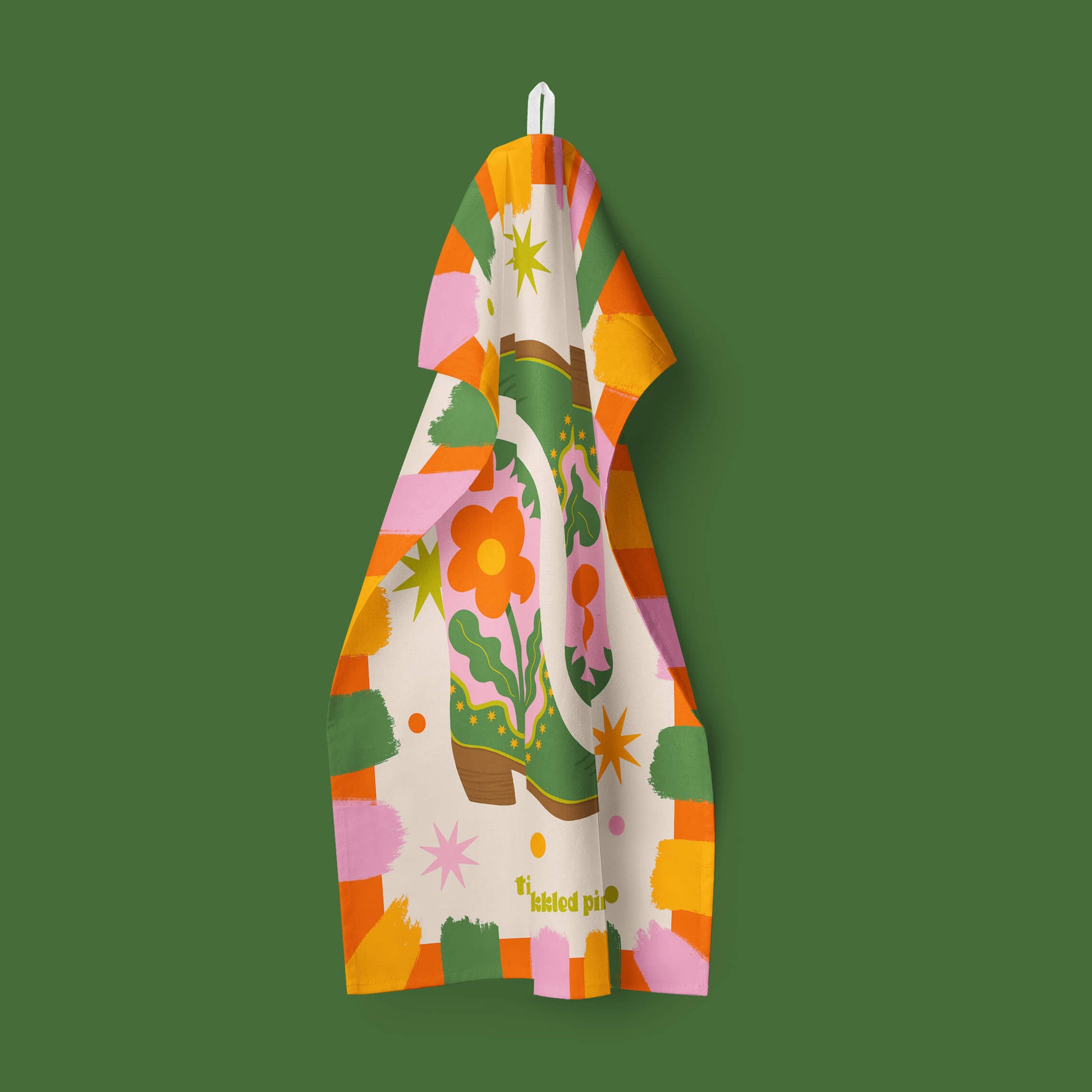 Retro Cowgirl Boots Tea Towel | Western Themed Kitchen Dish Towel